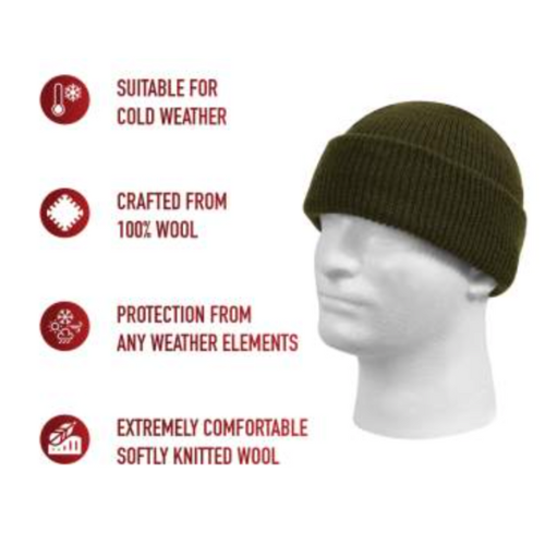 100% Wool Watch Cap (Olive Green)