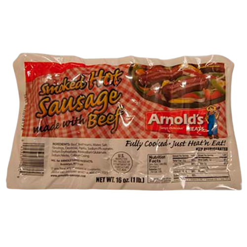 Arnold's Smoked Hot Beef Sausage, 16oz (Pork Free)