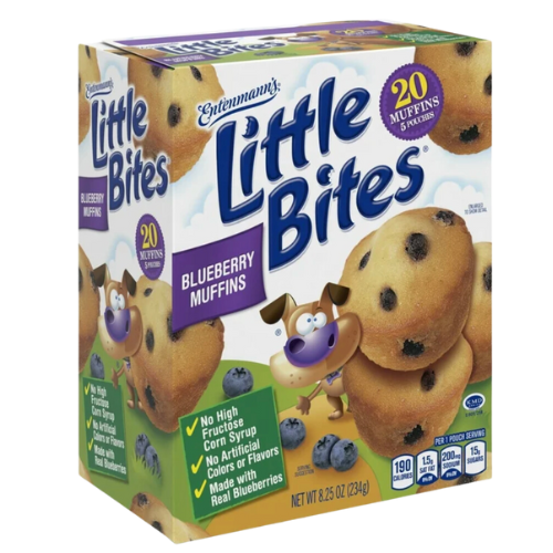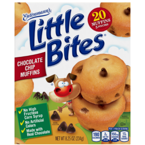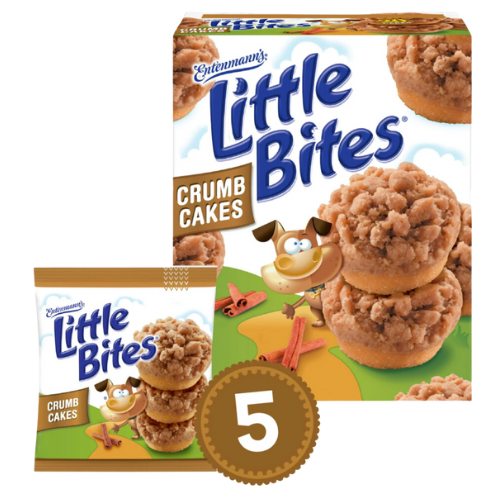 One 8.25 oz box with five pouches of Entenmann's Little Bites Party Cake Mini Muffins