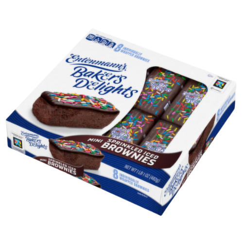 Contains 8 individually wrapped Entenmann's Baker's Delights Mini Sprinkled Iced Brownies