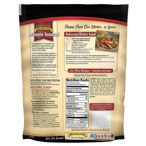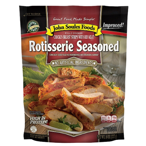 Boneless; Skinless Chicken Breast with Rib Meat; Water; Seasoning (Potato Starch, Dehydrated Chicken Broth, Sea Salt, Dextrose, Vinegar, Yeast Extract, Corn Flour, Paprika, Spices, Flavorings, Sugar, Dehydrated Yeast, Maltodextrin, Citrus Extract, Gum Acacia, Beef Extract Dehydrated Parsley), Chicken Flavor (Chicken Fat, Natural Flavors [Contains Sunflower Oil and Natural Flavors]); Chicken Base (Chicken Meat with Natural Juices, Salt, Organic Cane Sugar, Maltodextrin, Yeast Extract, Chicken Fat, Onion Powder, Turmeric, Natural Flavor, Spice Extractive);