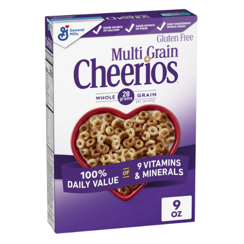 One 9 oz box of General Mills Multi Grain Cheerios Heart Healthy Cereal