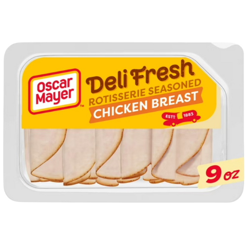 - One 9 oz. plastic tray of Oscar Mayer Deli Fresh Rotisserie Seasoned Chicken Breast, Coated With Paprika And Other Seasonings, Sliced Lunch Meat