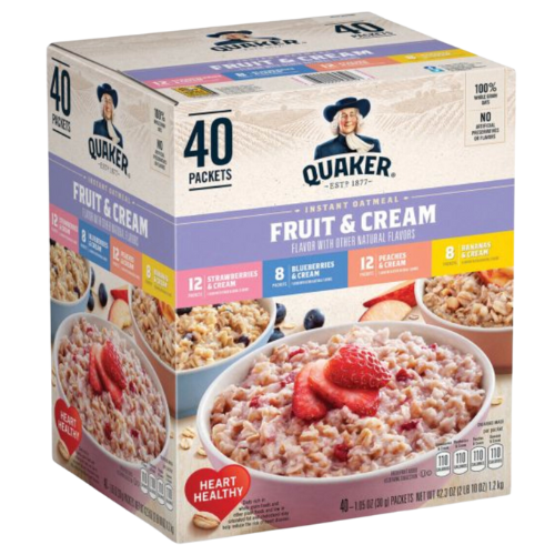 Quaker Instant Oatmeal Fruit & Cream, Variety Pack 42.3oz., 40pk.