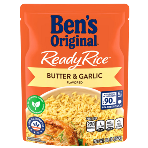 INGREDIENTS: WATER, PARBOILED LONG GRAIN RICE; LESS THAN 2% OF: CANOLA OIL, MODIFIED CORN STARCH, SALT, MALTODEXTRIN, YEAST EXTRACT, COCONUT OIL, AUTOLYZED YEAST, CORN SYRUP*, SUGAR, SUNFLOWER OIL, NATURAL FLAVORS (CONTAINS MILK), WHOLE MILK*, GARLIC*, TURMERIC (COLOR), VITAMINS AND MINERALS [CALCIUM (CALCIUM CARBONATE), IRON (IRON PHOSPHATE), VITAMIN B3 (NIACINAMIDE), VITAMIN B1 (THIAMINE MONONITRATE), FOLIC ACID], WHEY*, MONO AND DIGLYCERIDES, SUNFLOWER LECITHIN, MILK FAT, SKIM MILK*, TURMERIC EXTRACT (COLOR), BUTTER OIL, NATURAL SMOKE FLAVOR.