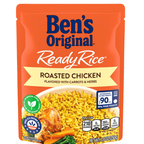 INGREDIENTS: WATER, PARBOILED LONG GRAIN RICE; LESS THAN 2% OF: CANOLA OIL†, SALT, YEAST EXTRACT, DEHYDRATED CARROTS, ONION POWDER, DEHYDRATED PARSLEY, GARLIC POWDER, SUGAR, POTASSIUM SALT, CITRIC ACID, CHICKEN FAT† ‡, NATURAL FLAVORS, SPICES, DEHYDRATED COOKED CHICKEN† ‡ (CHICKEN, CHICKEN BROTH, NATURAL FLAVOR, CITRIC ACID), TURMERIC EXTRACT (COLOR), SAFFLOWER OIL, VITAMINS AND MINERALS [CALCIUM (CALCIUM CARBONATE), IRON (IRON PHOSPHATE), VITAMIN B3 (NIACINAMIDE), VITAMIN B1 (THIAMINE MONONITRATE), FOLIC ACID], SUNFLOWER OIL.